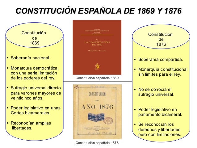 Así, la Constitución de 1837 proclamaba principios progresistas (soberanía nacional, amplia declaración de derechos, división de poderes y aconfesionalidad del Estado; y principios moderados (dos Cámaras colegisladoras, amplios poderes a la Corona, financiación del culto católico).