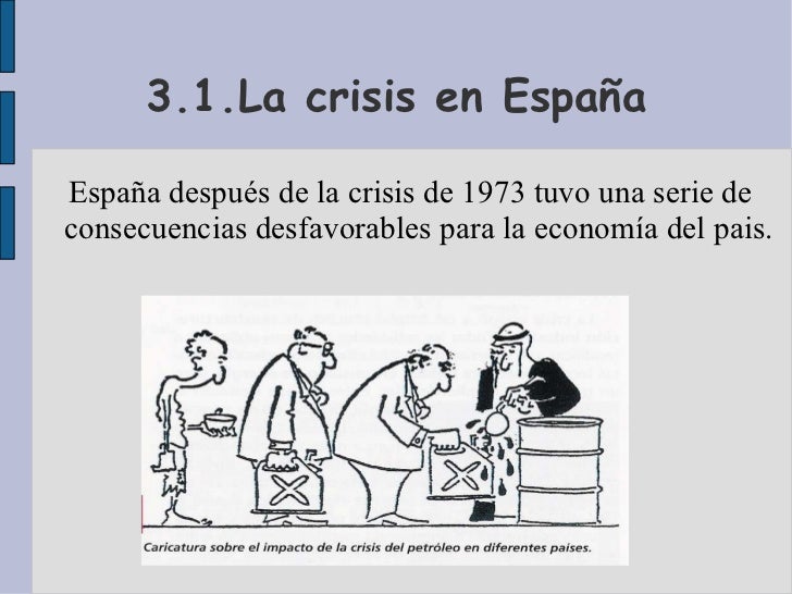 La crisis del petróleo de 1973 supondrá un mazazo para España ya que parte de su crecimiento se había basado en fuentes de energía baratas. Paralelamente el régimen agonizaba también políticamente.